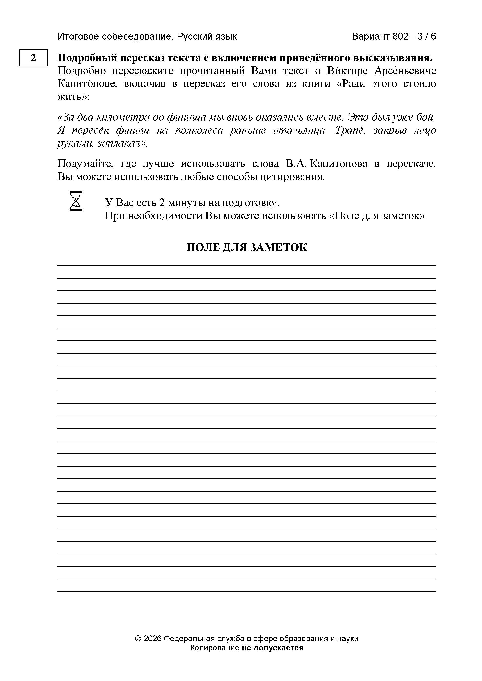 Итоговое (устное) собеседование 11 марта 2026. Часовая зона МСК-1 (задания и ответы)