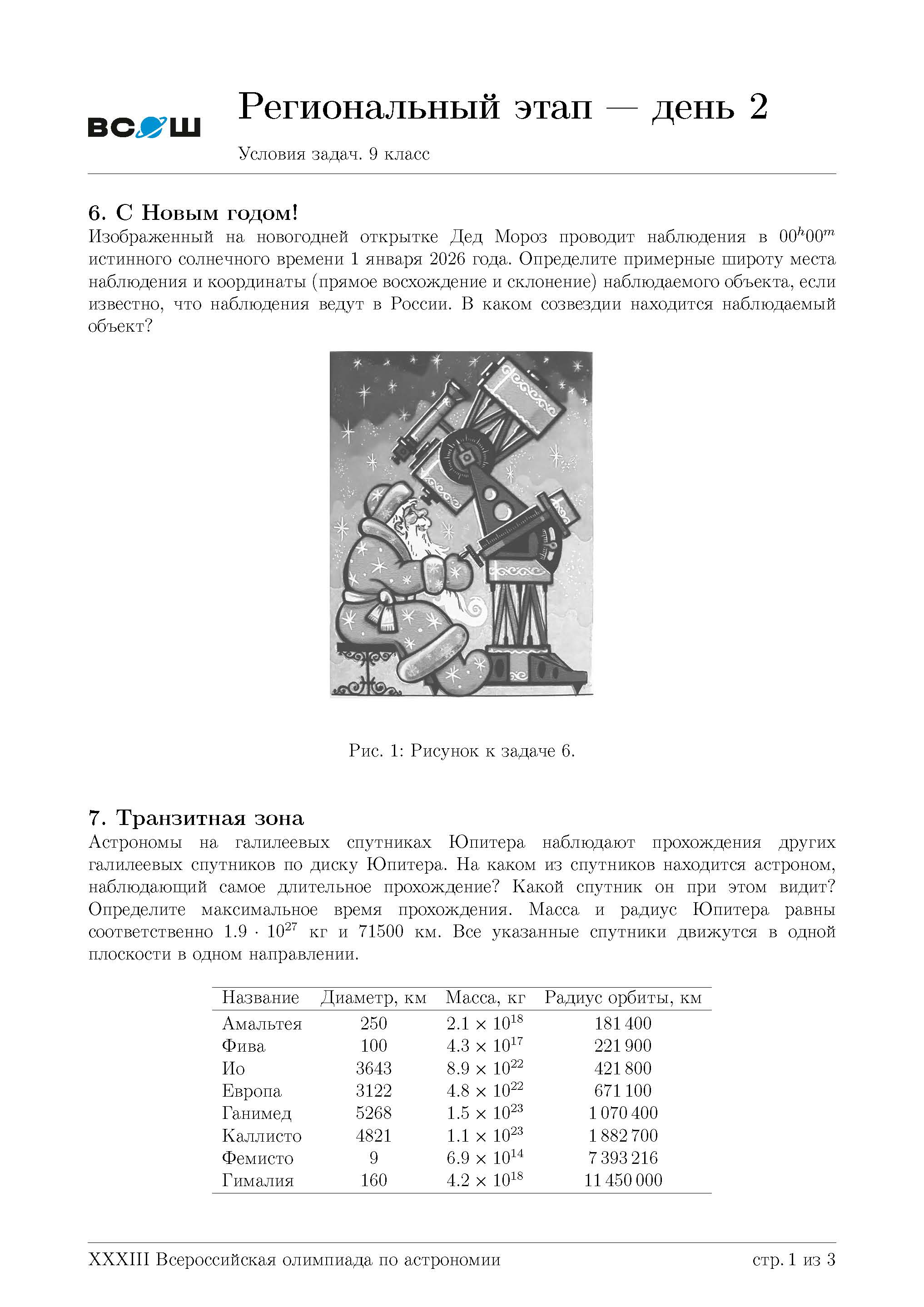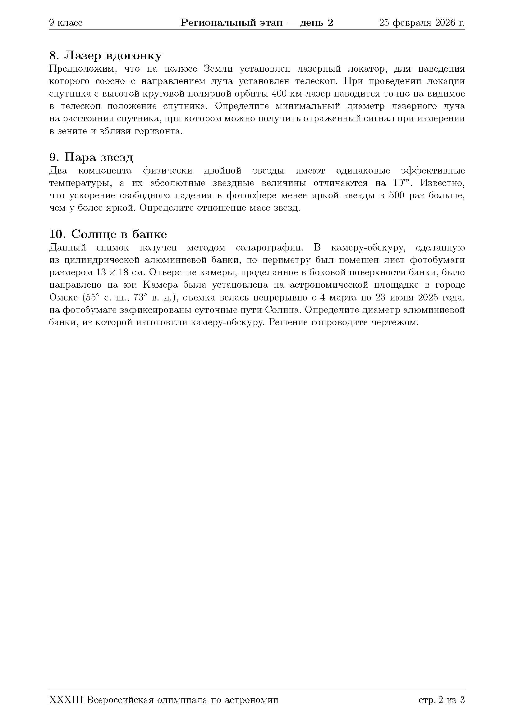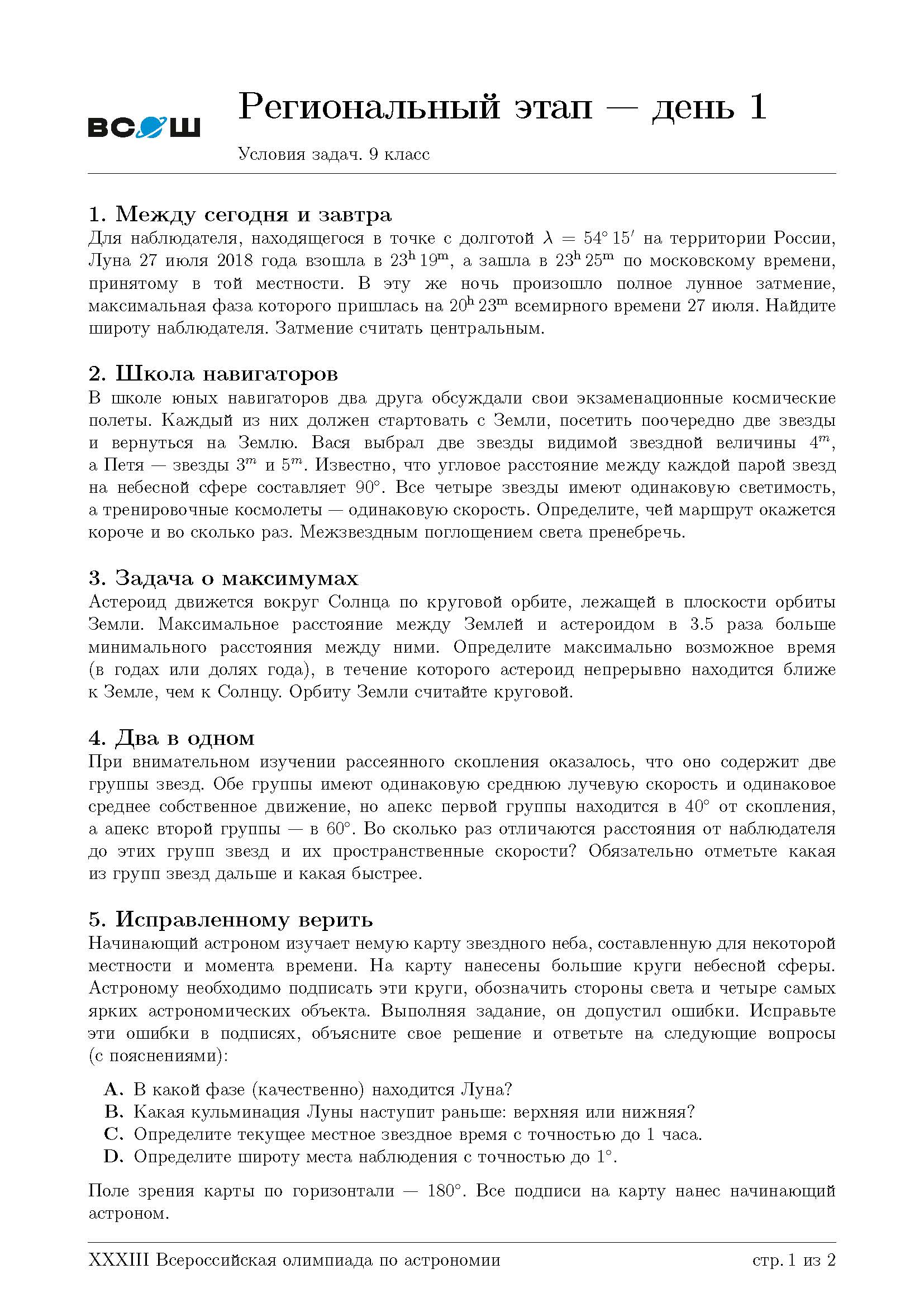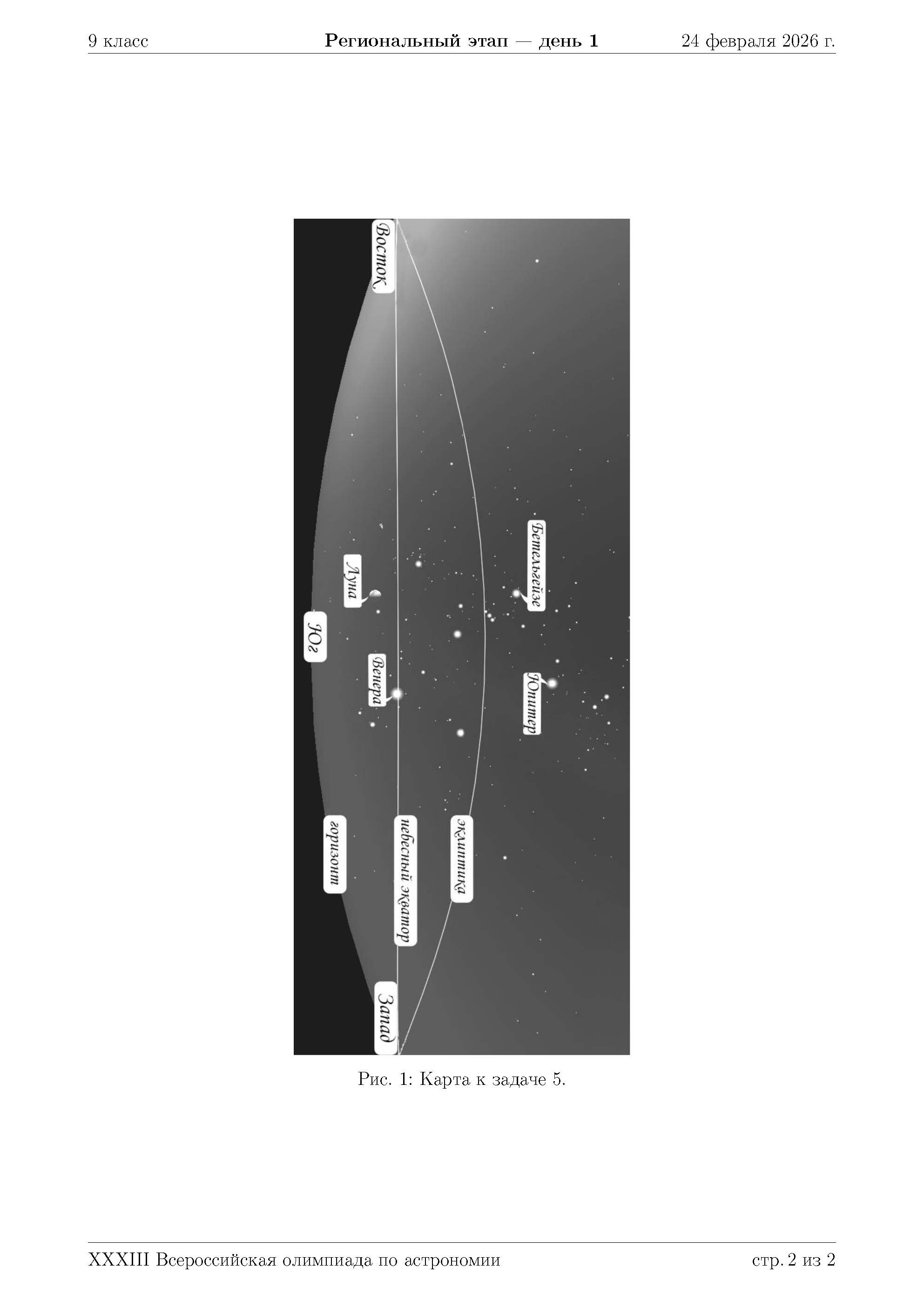 Всероссийская олимпиада школьников (ВсОШ) регионального этапа по Астрономии. Официальные задания, ответы и решения для 9 (девятого) класса (задания и ответы)